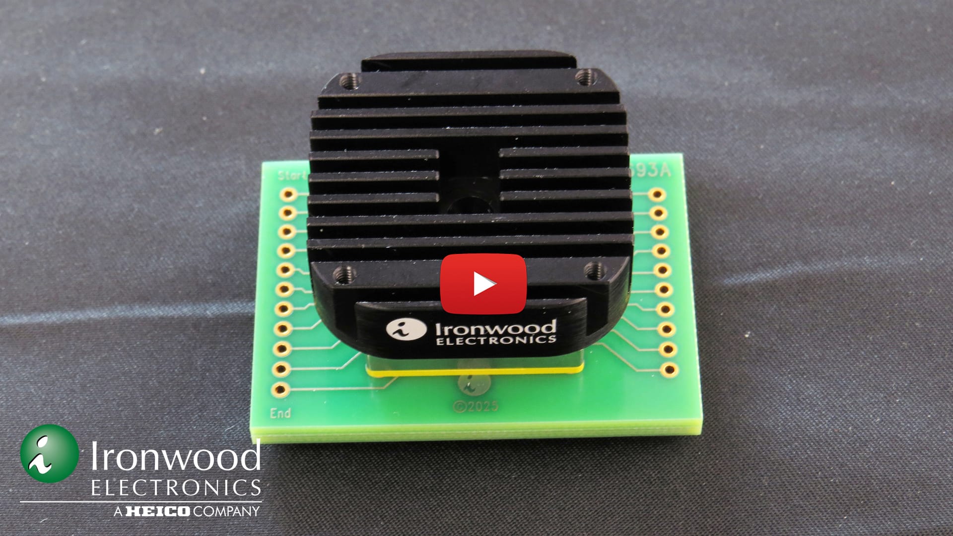 Test and debug 17x17mm IC, 0.8mm pitch with high performance elastomer socket with 94GHz bandwidth while operating at -55C to +160C. Heatsink compression screw can dissipate 12 watt power at room temperature.